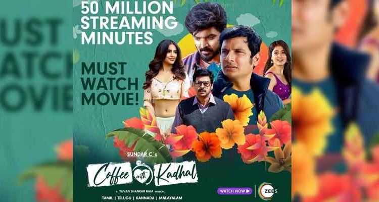 சுந்தர் சி இயக்கத்தில் சமீபத்திய ஓடிடியில் வெளிவந்த ‘காபி வித் காதல்’ 50 மில்லியன் ஸ்ட்ரீமிங் நிமிடங்களைக் கடந்து சாதனை படைத்துள்ளது.தமிழின் முன்னணி நடிகர்கள் ஜீவா, ஜெய், ஸ்ரீகாந்த் போன்ற நடிகர்களின் அட்டகாச நடிப்பு மற்றும் அழகால் கொள்ளை கொள்ளும் அம்ரிதா ஐயர், மாளவிகா சர்மா, சம்யுக்தா, ஐஸ்வர்யா தத்தா மற்றும் ரைசா வில்சன் என நட்சத்திர கூட்டத்தின் கூட்டமைப்பில் எடுக்கப்பட்ட இப்படம் இளைஞர்கள் மனதை கவரும் வகையில் உருவாக்கப்பட்டுள்ளது.இந்த மல்டி-ஸ்டாரர் ஃபேமிலி என்டர்டெய்னர் நவம்பர் 4, 2022 அன்று திரையரங்குகளில் வெளியாகி சிறப்பான வரவேற்பை பெற்றது. இந்நிலையில் டிசம்பர் 9, 2022, ZEE5 தளத்தில் டிஜிட்டல் பிரீமியராக வெளியான இப்படம் பார்வையாளர்களிடம் சிறப்பான வரவேற்பைப் பெற்றுள்ளது.