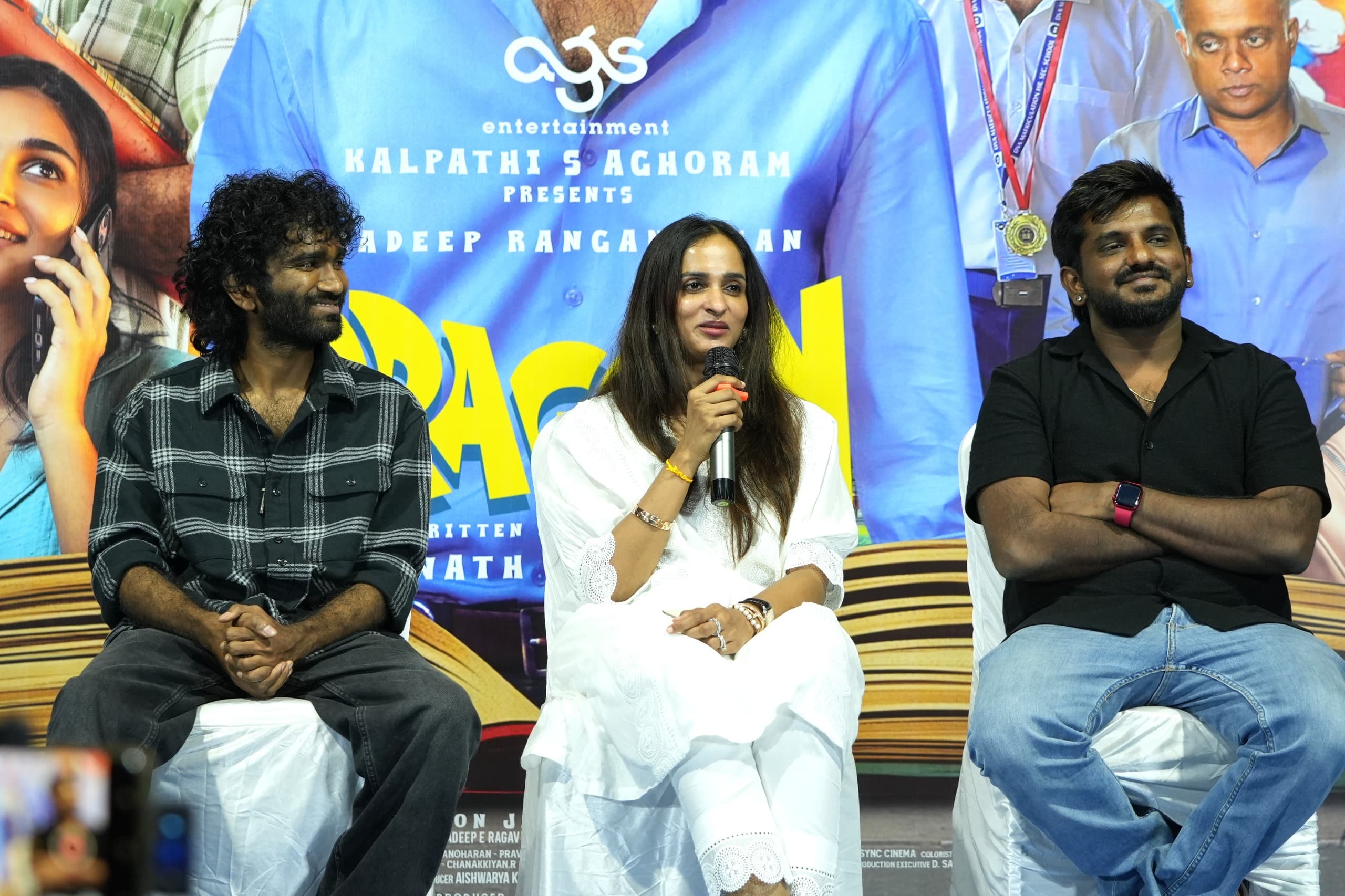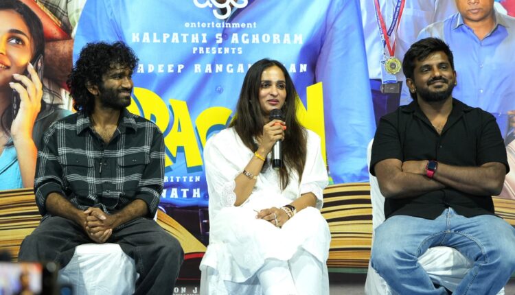 ‘ஓ மை கடவுளே’ புகழ் இயக்குநர் அஸ்வத் மாரிமுத்து இயக்கத்தில் உருவாகி இருக்கும் ‘டிராகன்’ திரைப்படத்தில் பிரதீப் ரங்கநாதன், அனுபமா பரமேஸ்வரன், கயாடு லோஹர், கே. எஸ். ரவிக்குமார், கௌதம் வாசுதேவ் மேனன், மிஷ்கின், வி ஜே சித்து, ஹர்ஷத் கான், மரியம் ஜார்ஜ், இந்துமதி மணிகண்டன், தேனப்பன் உள்ளிட்ட பலர் நடித்திருக்கிறார்கள். நிகேத் பொம்மி ஒளிப்பதிவு செய்திருக்கும் இந்த திரைப்படத்திற்கு லியோன் ஜேம்ஸ் இசையமைத்திருக்கிறார். இன்றைய இளைய தலைமுறையினரின் வாழ்வியலை மையப்படுத்திய இத்திரைப்படத்தை ஏஜிஎஸ் என்டர்டெயின்மென்ட் நிறுவனம் சார்பில் கல்பாத்தி எஸ். அகோரம், கல்பாத்தி எஸ். கணேஷ், கல்பாத்தி எஸ். சுரேஷ் ஆகியோர் இணைந்து தயாரித்திருக்கிறார்கள். அர்ச்சனா கல்பாத்தி கிரியேட்டிவ் புரொடியூசராக பணியாற்றியிருக்கிறார்.