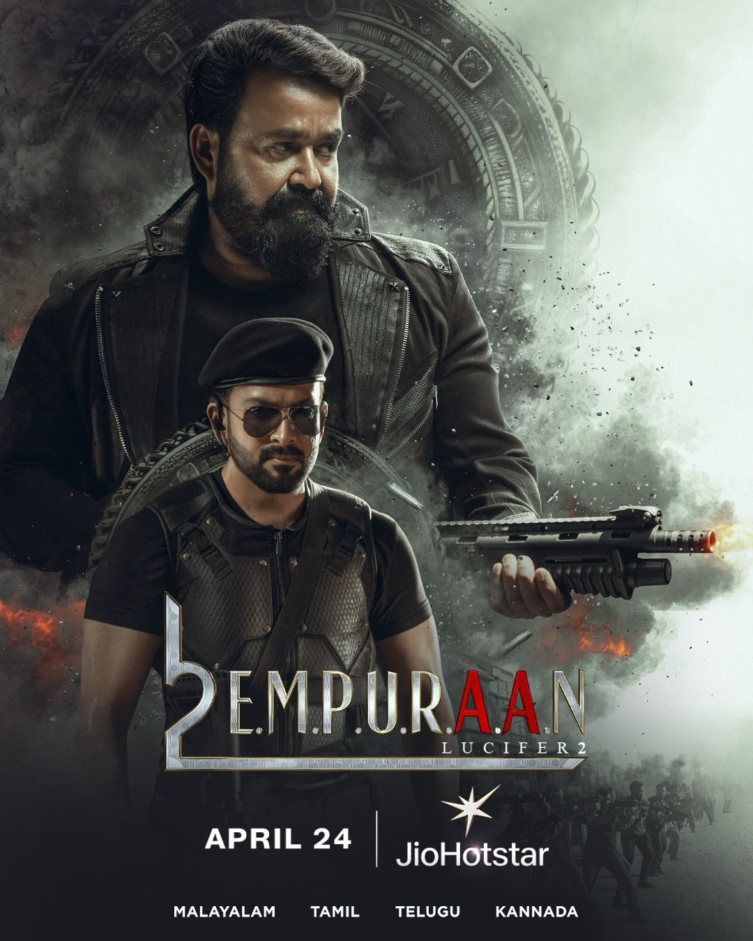 மலையாளத் திரையுலக வரலாற்றை மாற்றியமைத்த ப்ளாக்பஸ்டர் திரைப்படமான “எம்புரான்” வரும் ஏப்ரல் 24 ஆம் தேதி முதல், ஜியோ ஹாட்ஸ்டார் தளத்தில் ஸ்ட்ரீமாகவுள்ளது.