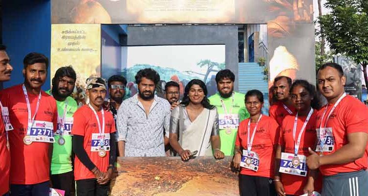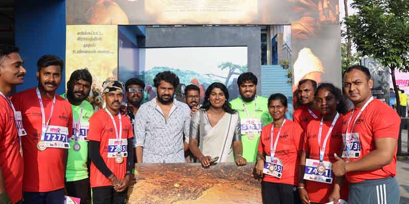 கெவி படக்குழுவினர் மலைக் கிராமத்து மக்கள் பயன்படுத்தும்‘டோலி’ என்கிற சாதனத்தை கைகளில் பிடித்தபடி இந்த மாரத்தான் நிகழ்வில் கலந்துகொண்டனர்.