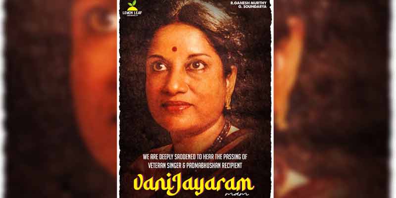 பிரபல பழம்பெரும் பாடகி ” பத்ம பூஷன் ” திருமதி.வாணி ஜெயராம் அவர்களின் திடீர் மறைவு தமிழ் சினிமா உலகிற்கும் , இசை உலகிற்கும் பெரும் இழப்பு.திருமதி. வாணி ஜெயராம் அவர்கள் கடைசியாக சில படங்களில் பாடியிருந்தார் . அதில் இசையமைப்பாளர் D.இமான் இசையில் ‘மலை’ திரைப்படத்திற்கு பாடியது அவர் பாடிய இறுதி திரை இசைப்பாடலாகும்.