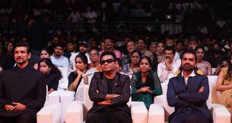 ஸ்டுடியோ கிரீன், ஞானவேல்ராஜா தயாரிப்பில் ஓபிலி கிருஷ்ணா இயக்கத்தில் நடிகர்கள் சிலம்பரசன், கெளதம் கார்த்திக், ப்ரியா பவானி சங்கர் உள்ளிட்ட பலர் நடிப்பில், ஏ.ஆர். ரஹ்மான் இசையமைப்பில் ‘பத்து தல’ திரைப்படம் இந்த மாதம் 30ஆம் தேதி வெளியாக இருக்கிறது. இதையொட்டி இதன் பிரமாண்டமான இசை வெளியீட்டு விழா சென்னை நேரு உள்விளையாட்டு அரங்கத்தில் (18.03.2023) நடைபெற்றது.