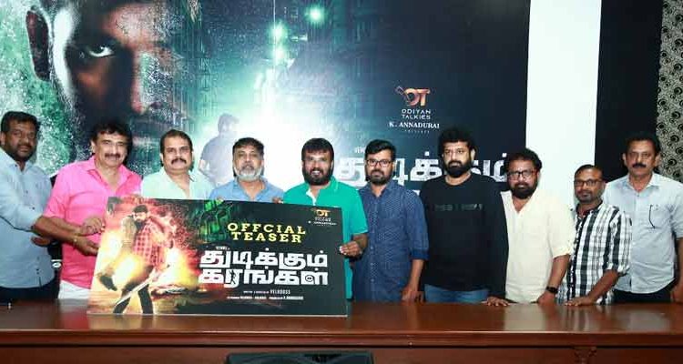 ஒடியன் டாக்கீஸ் சார்பில் K.அண்ணாதுரை தயாரிப்பில் உருவாகியுள்ள படம் ‘துடிக்கும் கரங்கள்’. விமல் கதாநாயகனாக நடித்துள்ள இந்தப்படத்தை வேலுதாஸ் இயக்கியுள்ளார். மேலும் வேலுதாஸ் மற்றும் காளிதாஸ் இருவரும் இணை தயாரிப்பாளர்களாக இணைந்து இந்தப்படத்தை தயாரித்துள்ளனர். மிஷா நரங் கதாநாயகியாக நடித்துள்ளார்.