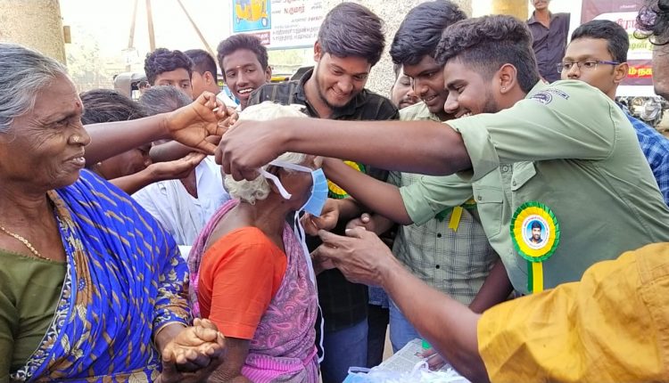 கிருமி நாசினியை கட்டுப்படுத்தும் சானிடைசிங் மற்று முகக் கவசம் இலவசமாக பொதுமக்களுக்கு நற்பணி இயக்கம் சார்பில் வழங்கப்பட்டது.