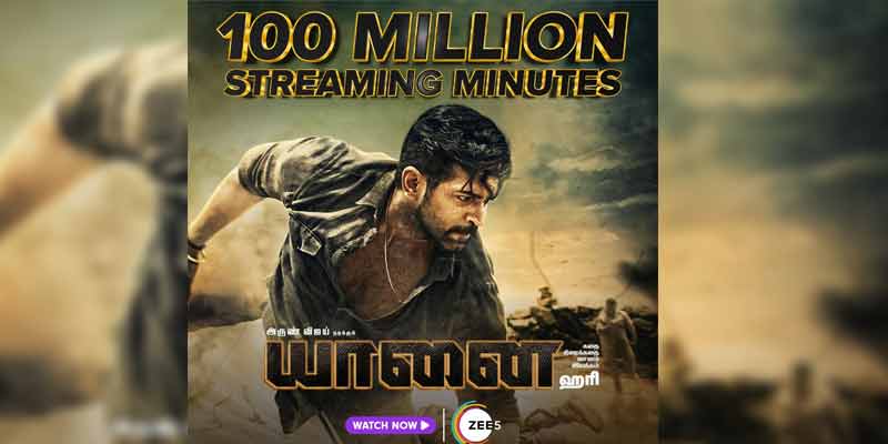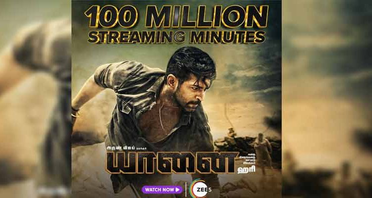 ஜீ5 தளத்தின் லேட்டஸ்ட் வெளியீடாக திரையிடப்பட்ட, இயக்குனர் ஹரி இயக்கத்தில் அருண் விஜய் நடித்திருக்கும் யானை திரைப்படம் 100 மில்லியன் பார்வை நிமிடங்களை கடந்து சாதனை படைத்து வருகிறது.
